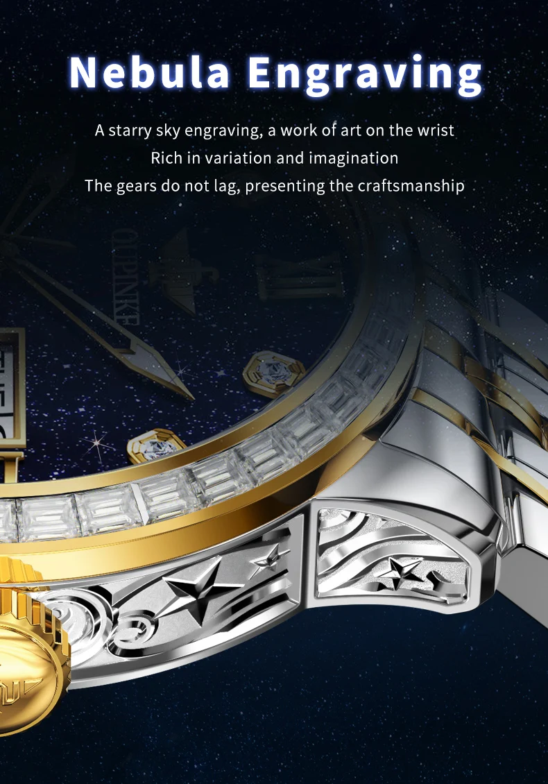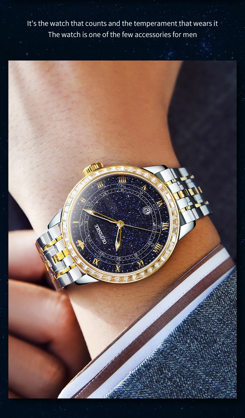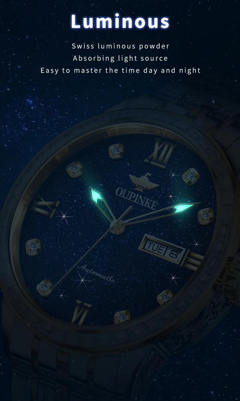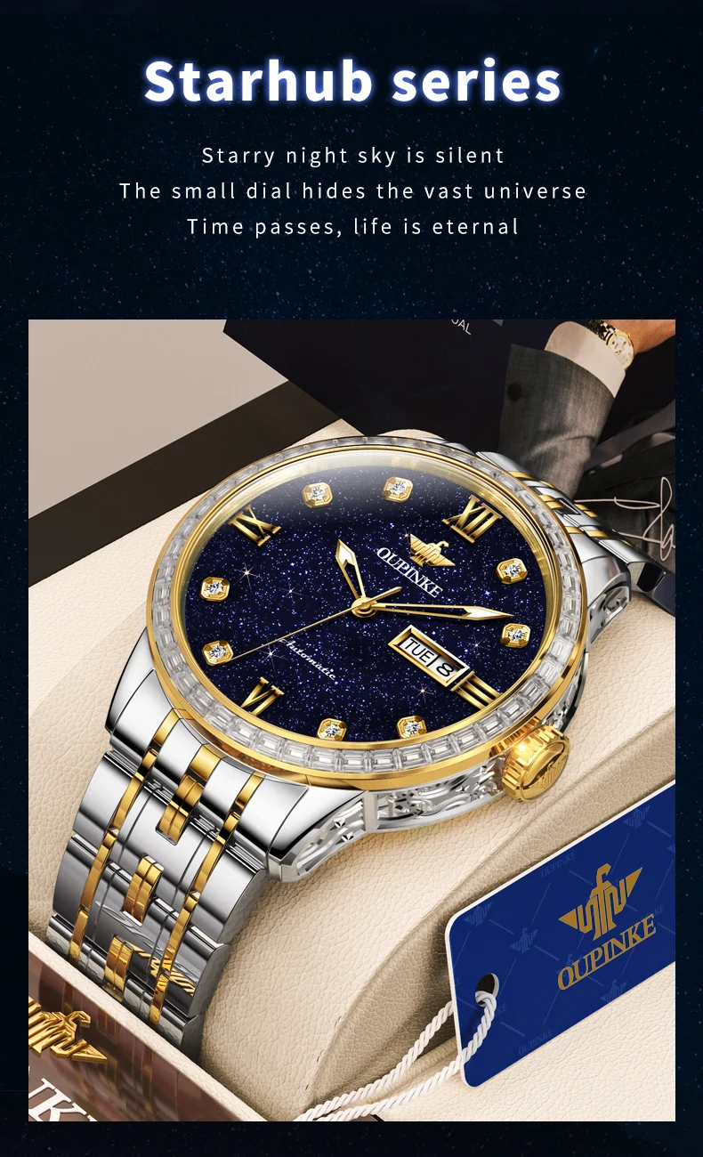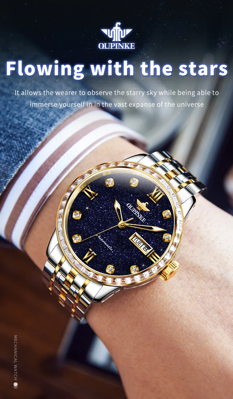 OUPINKE 3241 Man Watch High-end Luxury Original Automatic Mechanical Wrist Watches for Men Starry Sky Dial Elegant Mens Watch