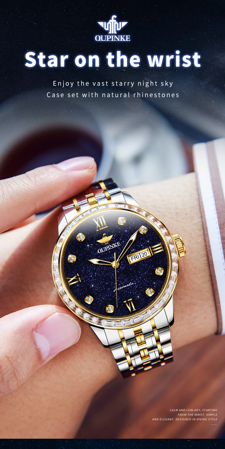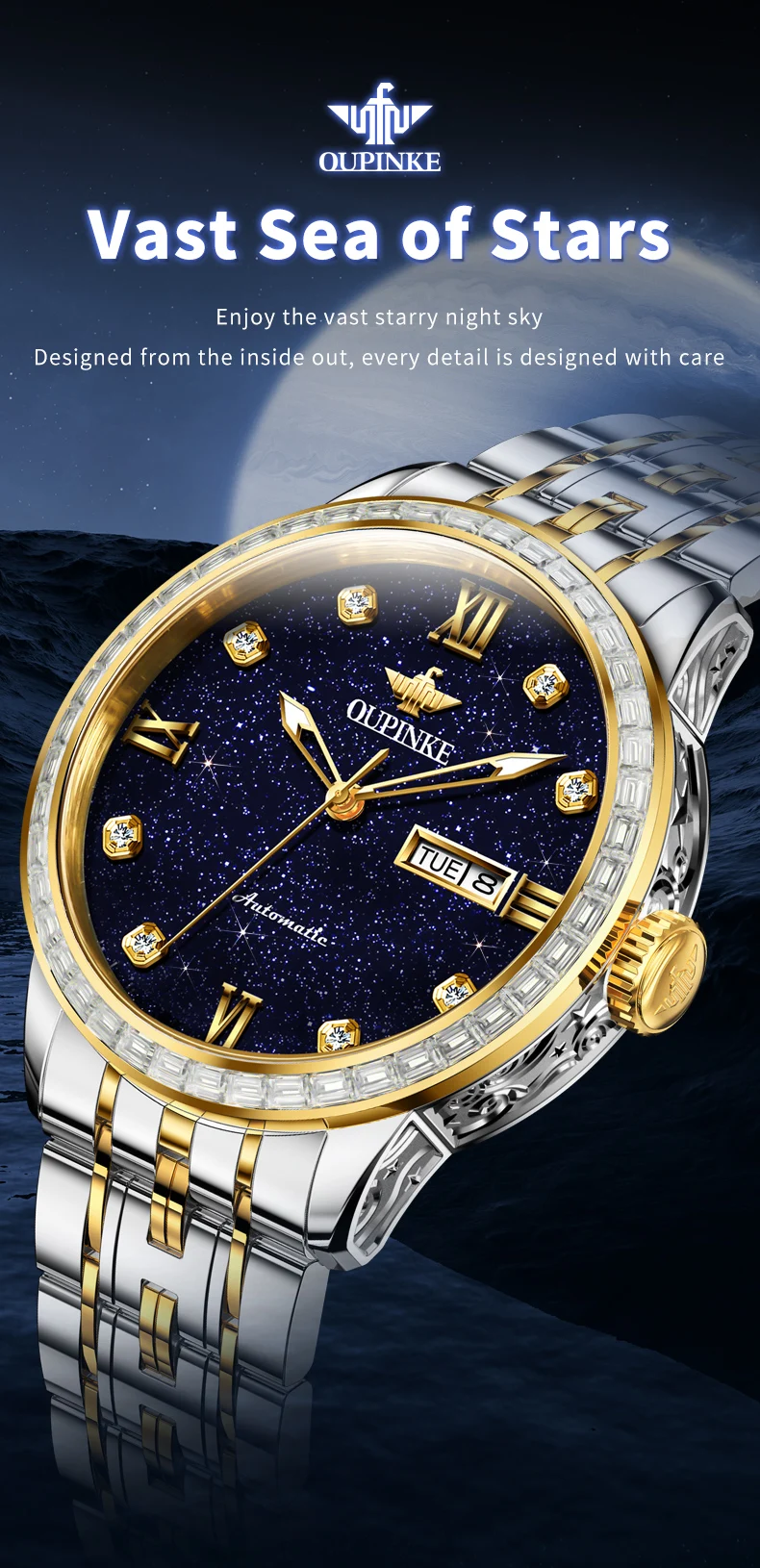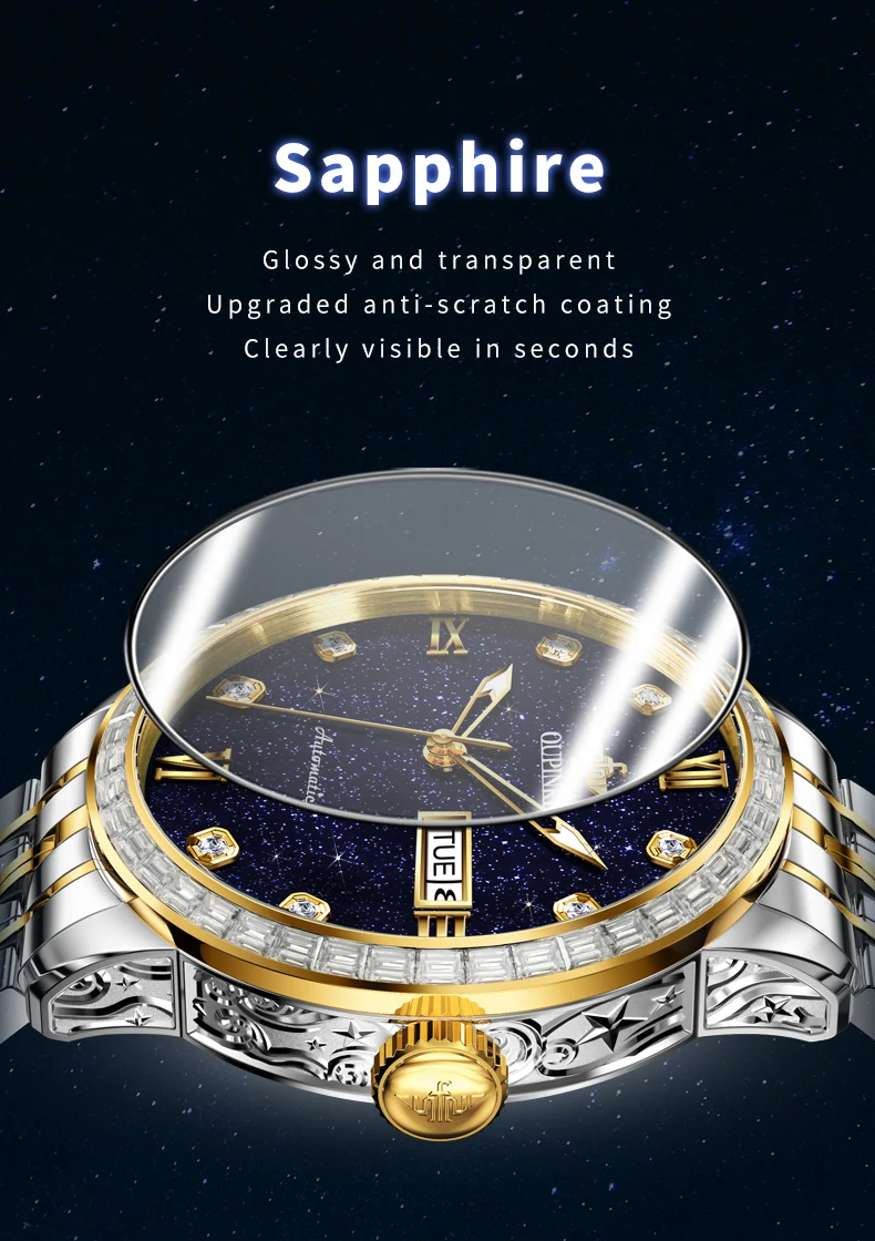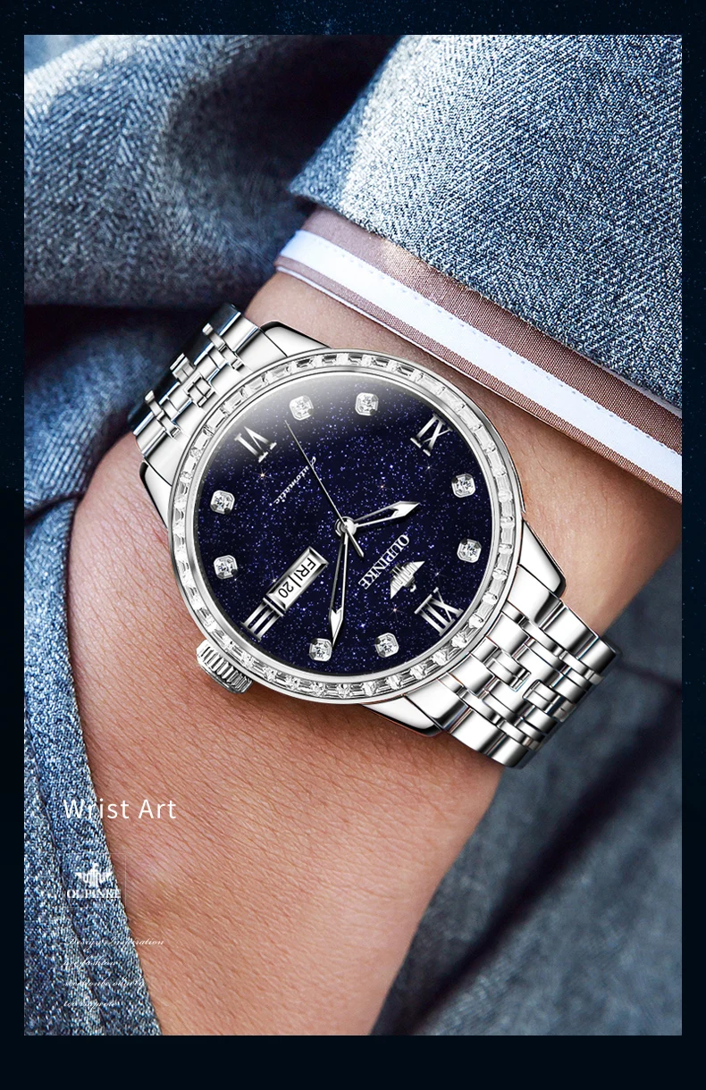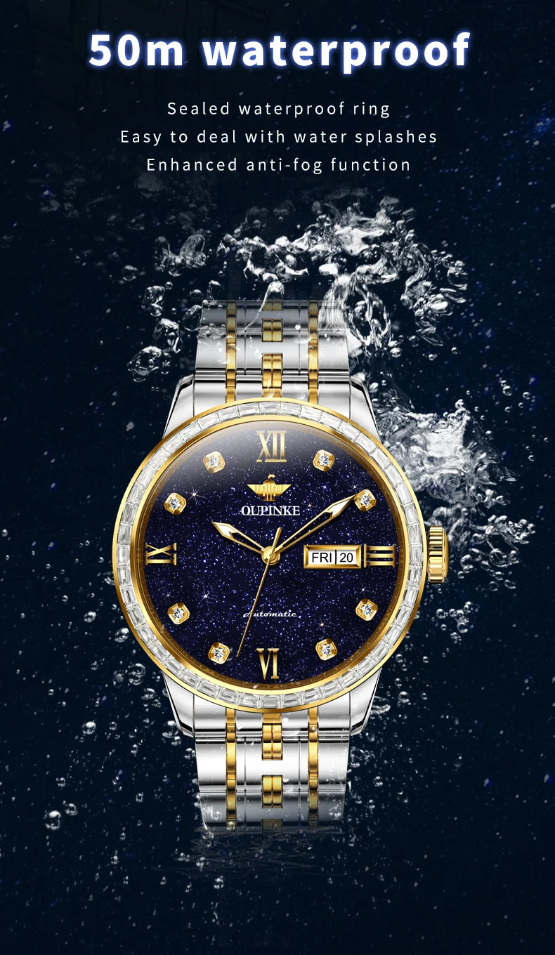 OUPINKE 3241 Man Watch High-end Luxury Original Automatic Mechanical Wrist Watches for Men Starry Sky Dial Elegant Mens Watch