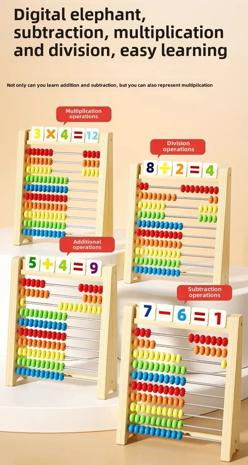 Wooden Counting Toy Abacus Montessori Education Math Toy Children Rainbow Counting Beads Addition Subtraction Operation Learning